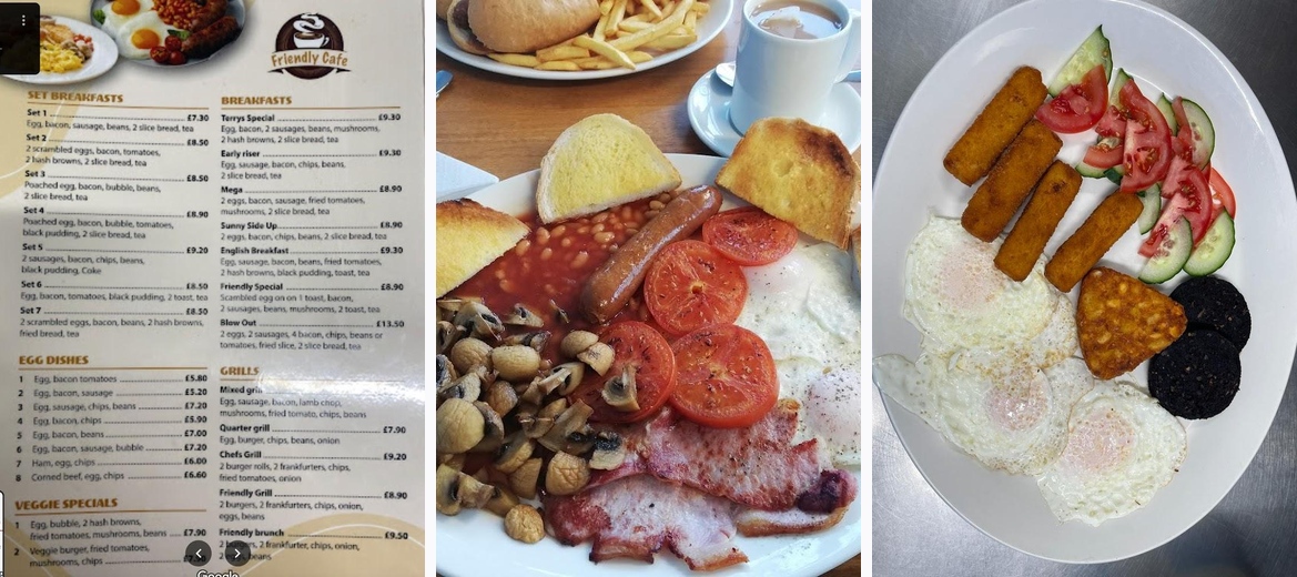 Don't miss out on the 'Terrys Special' for breakfast, or try the 'Friendly Grill' for a hearty meal. Their desserts, especially the apple pie with custard, are also a big hit!